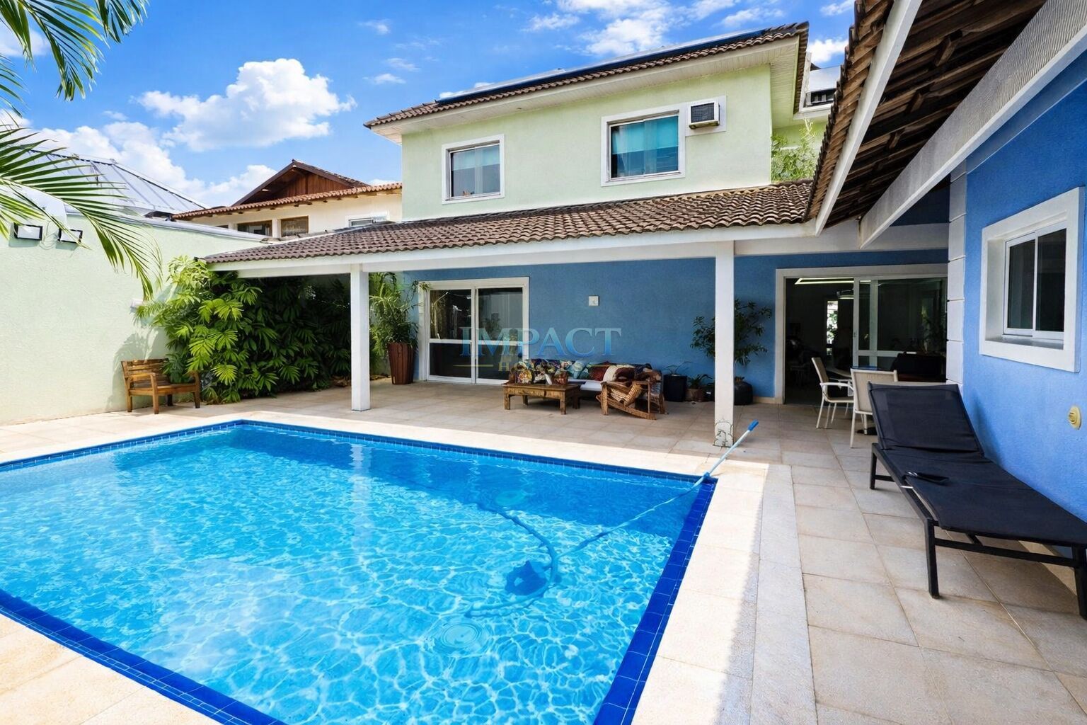 Ampla sala com acesso direto à área externa. Escritório, cozinha, área de serviço com dependência. Edícula nos fundos.